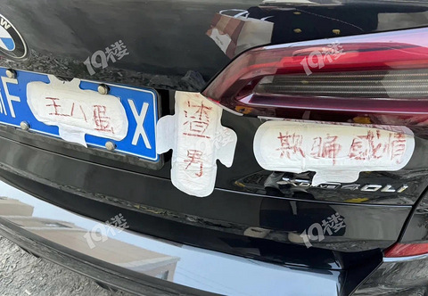 让我想起了很久远之前的一句话,宁可在宝马车上哭,也不愿意在自行车上笑…嘉善这辆宝马车就是现实版的“情感纠纷”啊…被贴满了姨妈巾,还写了一连串的污言秽语,据说是个时间管理大师,3年感情一文不值啊