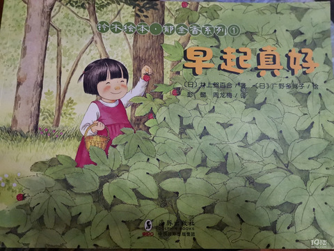 这本绘本是网上买的十几元,讲得是一个小姑娘玲玲早上起来去摘野草莓时发生的事情,玲玲看到还有一只小兔没摘到野草莓于是将自己篮子里摘到的一颗偷偷放到那儿给小兔子吃……问孩子玲玲这样子好不好,她为什么要这样做小孩子都能回答得出来感受到那个小姑娘的善良,作为亲子绘本这本很暖心。
