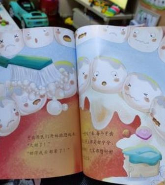 这套绘本买来是想让她养成爱刷牙的好习惯的,网上买来十几元,是和孩子一起读,让她知道牙齿喜欢什么食物,每天给牙齿洗泡泡浴的重要性。