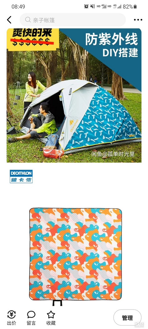 买来就用过一次,还是在家里阳台上用的,野餐垫一次都没用过,买来就闲置了。帐篷原价399,野餐垫99,现在打包400出了,嘉兴市区送货上门。