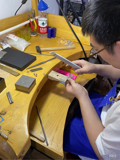 机缘巧合之下参加了19楼的金工课堂,真的是爱了。起初是同事告诉我有这个活动,我觉得和他一起动手制作对戒肯定会有不一样的体验,于是果断报名。 我和他开车将近四十分钟才到达。一进门,小姐姐热情地接待我们,帮着我们量尺寸,带我们选心仪的款式,还给我们拿饮料,真的是太感谢了。手工老师真的是技艺精湛,幽默风趣,又很有耐心,从开始的做花纹,到点缀一抹金色,到最后的抛光,老师一直都是耐心地指导我们,帮我们修饰
