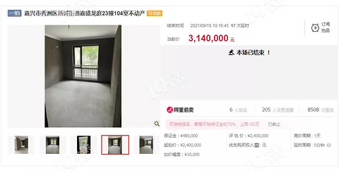 壹今天上午,在阿里拍卖平台上,嘉盛龙庭的一套法拍房“又”成交了。 建面约238.56㎡的底跃户型,最终落锤在314万元。 而在7月中旬时,这套房源曾拍出过337万的价格。可是在最后的付款环节,买家悔拍了,48万元保证金打了水漂。 相比来看,两个月时间,这套房子的价格,降了23万。 要是把时间放的更长一些,今年三月份,与其同幢、同楼层、同户型、同面积的“对门”,还拍出过380万的“天价”。唯一的区
