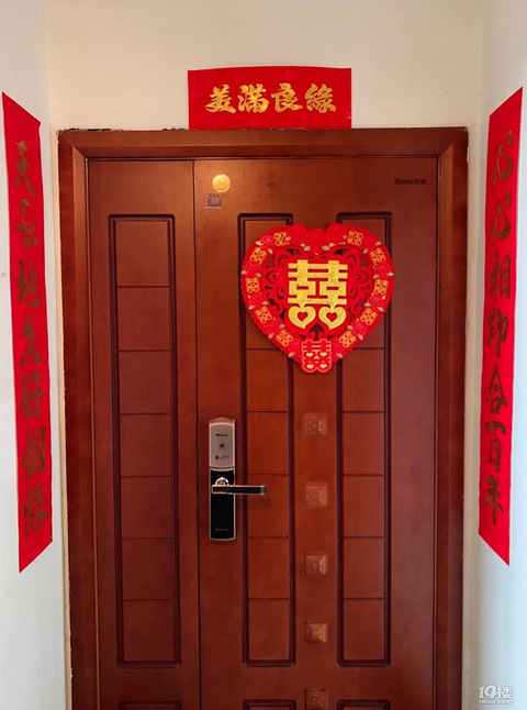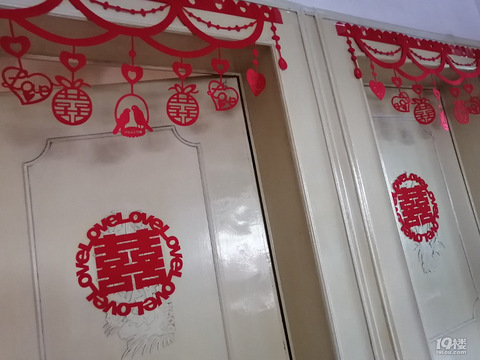 要想跟拍照片好,婚房装饰少不了。先来说说接亲的婚房装饰吧,首先是大门口,就贴了喜字和对联,这个喜字我很喜欢,还是立体效果的。客厅因为沙发背景有挂了照片墙,电视墙也有装饰,就简单地贴了拉花。重头戏就是主卧了,床头正中间是一个定制了名字和婚期的喜字,这家淘宝店的喜字又多又好看,基本都支持定制。喜字两边贴了纸扇,纸扇的效果意外得好,又简洁大方又好看美观。衣柜移门和窗户我贴了卡通的喜字,特别可爱,喜气洋洋