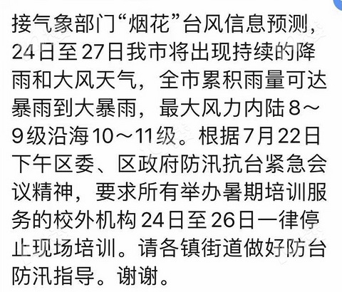 “烟花”要来了,收到了暑期培训班的停课通知!你们有收到吗?