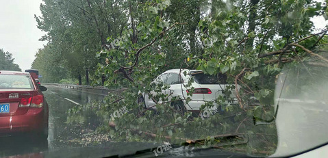 这风也太大吧!320国道上吹断了树 把保时捷给砸了!