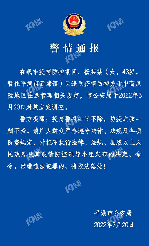 平湖警方对杨某某立案调查!系今早新埭确诊病例!
