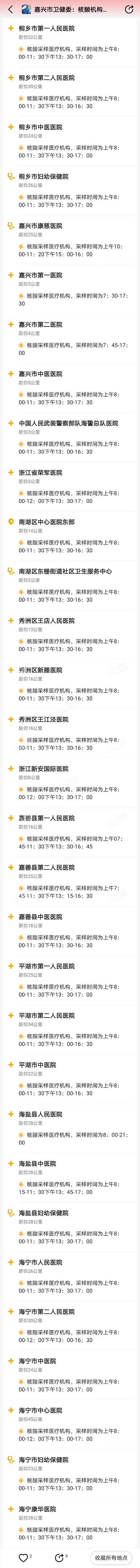 嘉兴全市31家核酸采样机构信息整合!一院提供24小时检测服务!