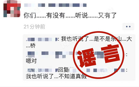 海宁官方辟谣!今日网传“听说东山大桥附近有了……” 经核实为谣言真相是东山大桥因修路封道!!! 网络不是法外之地请广大市民不要随意转发未经证实的消息! 再次提醒大家不造谣!不信谣!不传谣!