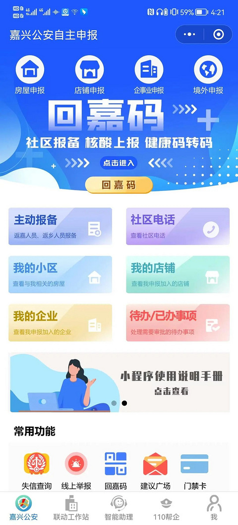 今天下午,嘉兴经开区召开“经开·回嘉码”的推广应用和培训会,全面启动“回嘉码”应用和推广工作,探索推进全区疫情防控全周期闭环体系建设,切实筑牢疫情防控的安全屏障。 方便快捷一码实现全流程闭环管控 打开“嘉兴公安自主申报”微信小程序,首页进入“回嘉码”,点击“主动报备”,根据系统要求提供健康码、行程卡、核酸记录截图等材料……近日,家住嘉兴经开区长水街道槜李社区的陈女士通过自主申报“回嘉码”