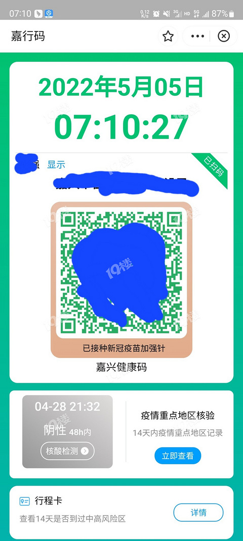 今天扫嘉行码有变化!健康码、48小时核酸证明和行程都整合了!