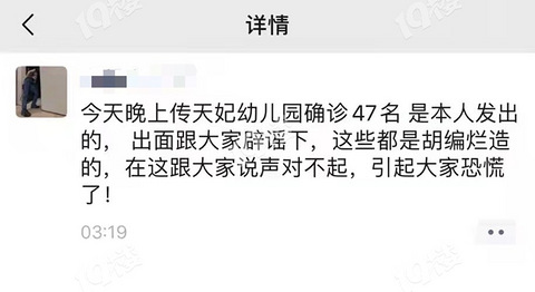 天妃幼儿园确诊47人系谣言!宝妈发朋友圈致歉!公安已介入调查!