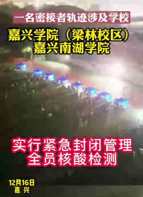 【12月18日最新:嘉兴学院、嘉兴南湖学院解封!】记者从嘉兴学院和嘉兴南湖学院了解到,今天下午5点25分,嘉兴学院(梁林校区)和嘉兴南湖学院将解除封闭管控。 按照闭环管理,嘉兴学院将继续执行《关于进一步加强校园疫情防控工作的通知(三十二)》要求,落实人员管控措施,严控人员流动,学生非必要不出校,教职员工非必要不出市;师生员工切实履行疫情防控个人责任,加强个人防护,少聚集、戴口罩、勤洗手,保持健康社