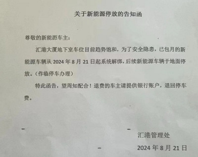 【今日回帖话题】 某地禁止新能源车进入地库!大家能接受这种规定吗?都来说说你们的看法! 近日 浙江宁波某大厦物业禁止新能源车进地库停放引发了网友关注和热议 据该大厦物业管理人员表示是处于安全考虑和车位管理的需要由于新能源车起火风险相对较高且地下车库的车位趋于饱和为杜绝安全隐患并优化利用车位资源新能源车需统一停放在地面固定车位但目前这一方案仍在讨论阶段 对此,有些网友认为:电车确实经常发生自燃事故