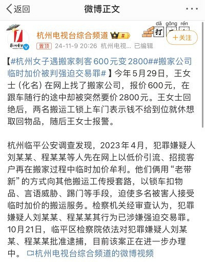 【今日回帖话题】 @嘉兴人 都来说说你们遇到过哪些临时加价的情况? 近日 浙江杭州一女子遇到搬家刺客引发热议 那今天大家就来聊聊你们遇到过哪些临时加价的情况? 百晓生先来打个样:在其他城市旅游的时候打车目的地比较偏僻司机来了以后说要加钱加的倒是不多还是给了 【回帖有奖】用app端回帖评论就会获得随机红包一个限量88个 先到先得哦~【回帖时间】11月10日 20:00-24:00 【友情提示】1、