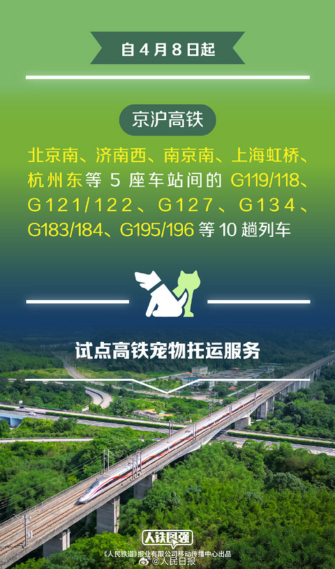 【今日回帖话题】 宠物也能坐高铁! @嘉兴人 都来说说你如何看待高铁宠物托运服务? 你支持吗? 据央视新闻,自4月8日起在京沪高铁北京南、济南西、南京南、上海虹桥、杭州东等5座车站间的10趟列车上试点“隔离运输、人宠分开、专人看护”的高铁宠物托运服务! 小编搜了下,目前的列车班次还没涉及到嘉兴但高铁宠物服务接下去肯定会越来越推广开来! 那今天大家就来说说你如何看待高铁宠物托运服务?你支持吗? 百