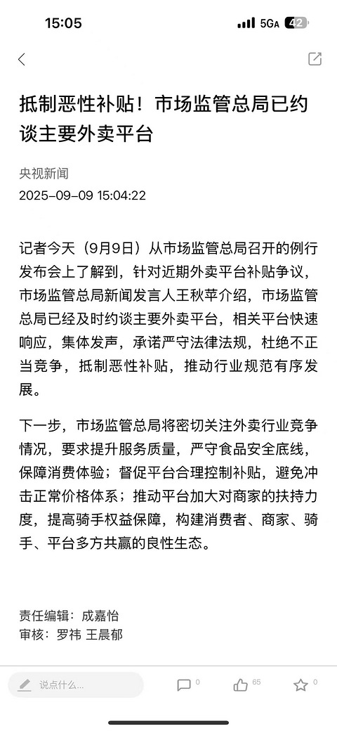 》今日回帖话题《 外卖平台各种大战已经很久了今天发布说要抵制外卖恶性补贴!@嘉兴人这事你怎么看?你领到过最大的外卖红包是多少? 现在的各个外卖平台每天都会有不同的券!大家都点的不亦乐乎!但是现在说要抵制外卖恶性补贴了!主要外卖平台被约谈 之后可能都没有那么大额的券了 那今天大家就来聊一聊:这事你怎么看?你们领到过最大的外卖红包是多少? 百晓生先来打个样:补药啊!羊毛还是想薅的不过有些补贴活动商家