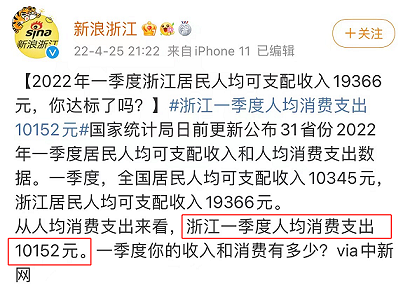 浙江一季度人均消费支出10152!大家每月支出多少 有没有拖后腿