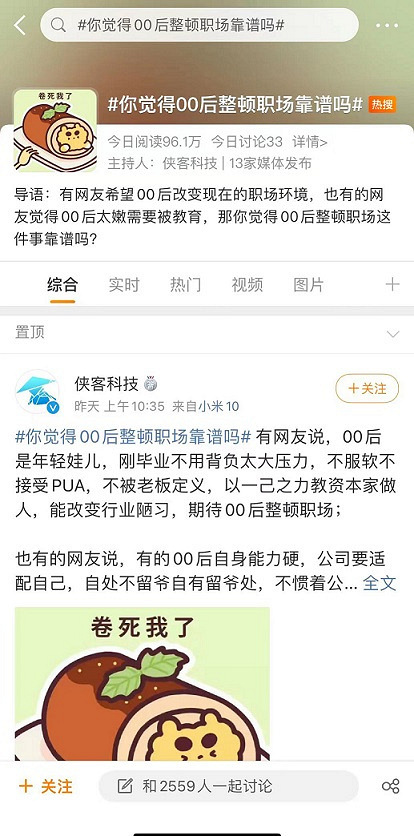 【今日回帖话题】00后整顿职场火了!你觉得现在的职场年轻人和以前比有啥不一样? 最近大家有没有关注到微博上经常出现00后整顿职场的词条 作为新世纪的青年00后已经踏入职场 咱们今天就来说说你觉得现在的职场年轻人和以前比有啥不一样00后真的有在整顿职场吗? 快在下方评论区回帖说一说!还能获得红包一个哦! 百晓生先来打个样:小编有个朋友去年刚踏入职场年初一领导突然叫她改方案朋友气的已读不回还把大年夜