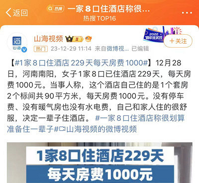一家8口住酒店火了!不谈钱,你愿意一辈子不买房住酒店/租房吗?