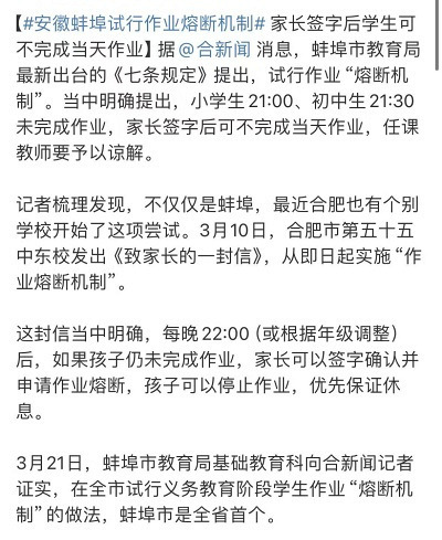 一地试行作业熔断机制!如果你是家长,会同意孩子不写完作业吗?