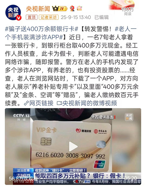 骗子送四百万银行卡? 还见过哪些诈骗老人的方式?怎么劝阻?