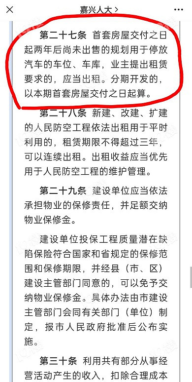 【今日回帖话题】你们小区的车位紧张吗?你的车位是买还是租?花了多少钱? 》》》19楼网友@dogroro发帖:嘉兴人大立法通过了!小区没卖掉的车位,应当租给业主!开发商禁止只卖不租!消息发布后,引来网友议论纷纷@ldg72012表示:现在很大一部分矛盾是小区地下车位车子很少地面抢车位,乱停@嘉兴人,你们小区的车位情况也是地面比地下紧张吗?你的车位是买的还是租的?花了多少钱?快来回帖说说吧!别忘了