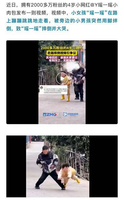 【今日回帖话题】 @嘉兴人 都来聊聊如果是你们作为家长会让自家小孩当网红吗?为什么?说说你的看法! 近日 拥有2000多万粉丝的4岁小网红@瑶一瑶小肉包走路被绊倒的视频引发争议 许多网友质疑其母亲疑似摆拍 随后“瑶一瑶小肉包”母亲 在账号上发布长文回应 那今天大家就来聊聊如果是你们作为家长会让自家小孩当网红吗?为什么?都来说说! 百晓生先来打个样:孩子年纪太小还是不考虑了毕竟网络舆论的力量太大不