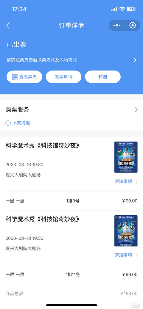 转让8月18日19:30嘉兴大剧院的《科技馆奇妙夜》两张