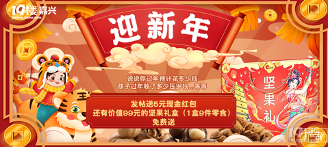 新年新气象 跟亲朋好友拜年是少不了的 说说你今年过年预计花多少钱,分别都花在什么地方孩子过年收了多少压岁钱,分别是谁给的,金额是多少...等等 发帖就送5元现金红包 还有价值99元的坚果礼盒(1盒9件零食)免费送 【参与方式】标题格式:【迎新年】+标题帖子内容要求说明文字50字以上+2张图片及以上(帖子不能太水) #活动奖品#【人人有奖】5元现金红包1个发帖后需要找嘉兴妈妈(jxmam12)领取