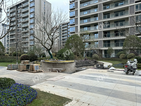 大家好,老陈最近看了几个荣安樾庄系的在建项目的工地,发现荣安樾庄系列目前进度最快的项目居然是位于金融广场板块的沁樾庄。从施工进度来看,除了一些景观收尾,已经无限接近交付状态了。老陈就拍了一些照片,稍微聊两句这个项目。小区主入口大堂还没施工完成,故没有拍摄。 东侧主入口小跌水,施工接近完成,相对比较精致。 标准一层单元入户,一圈45度石材干挂+格栅装饰,缺点在单元门以及门厅面积略小。单元门风格老陈个