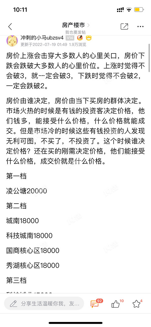 还记得21年发过一个帖子,当时预测北师大最终会到2万,国商科技城1万8,非热门板块1万5,余新油车港1万2,其他乡镇8000,目前来看,实现的概率越来越高了,当初底下评论都是说我扯淡的。。。。目前去看看各板块成交价,有不少已经在这个区间,或者非常接近这个区间了,最坚挺的北师大也在接近预测。当初预测,21年,楼市还不错,刚刚过了高峰,国商当初很多二手还是挂牌在3万呢,很多看到那个预测的价格都当笑话,