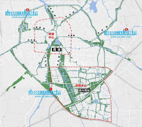 南湖中心以南湖为锚点建设的政治文化中心,高铁中心则以高铁嘉兴南站为锚点建设的创新商务中心。