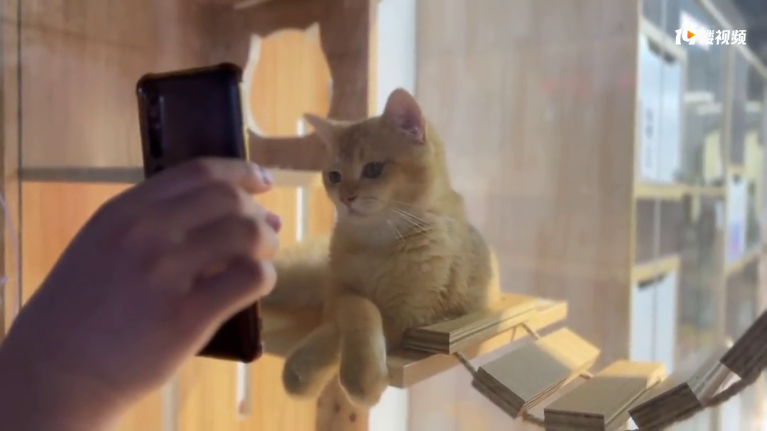 去猫咖看到的小猫咪好可爱,我以为我的梦中情毛应该是发腮脸煤气罐的胖崽,但这条猫凭借骄矜的二郎腿瞬间吸引了我的注意,给它看小视频它好认真[/11害羞]