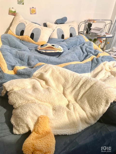 降温来的猝不及防 一夜入冬的感觉空调被已经救不了我这个冻美人了赶紧把家里的四件套都换了整一个温暖的感觉每晚睡进被窝里暖暖的 可可爱爱的唐老鸭