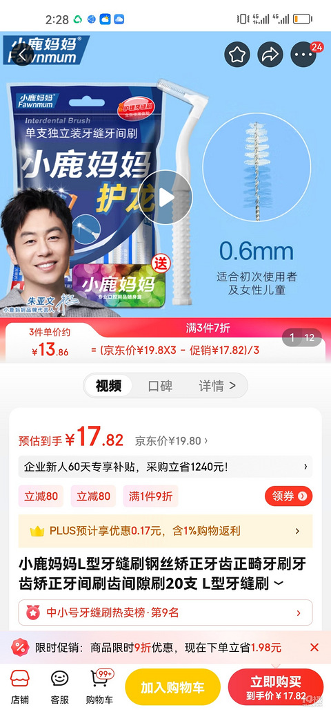 作为牙科常客被朋友安利了这个牙缝刷,真的对牙齿不是很整齐的人很友好,比牙线更好用!新手买的最细的一款,还挺方便的,就是不知道对牙龈有没有什么刺激...
