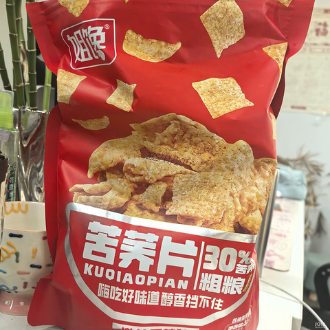 随手买的苦荞片,价格是薯片的三分之一,但味道完全不输,非常脆,味道浓郁,而且总感觉比薯片健康点,两个味道,一包已经吃完了,五星推荐!