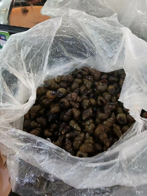 阿姨在洗螺丝,说要卖七八块钱一斤呢,好多