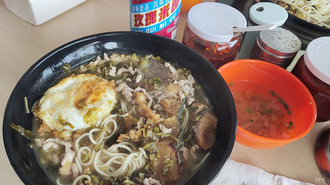 徐家埭来缘面馆,位于平湖徐埭老镇上。店里新装修的,环境干净。可以自己泡汤。生意兴隆,中午饭点时满座,老板按客人点单先后下面。等了二十分钟。味道还不错,本帮口味,价格实惠。汤头很干净,浇头料的量可以。老板说爆鱼不够了,补放了两片牛肉。[/11微笑][/11偷笑]如图15+2元。