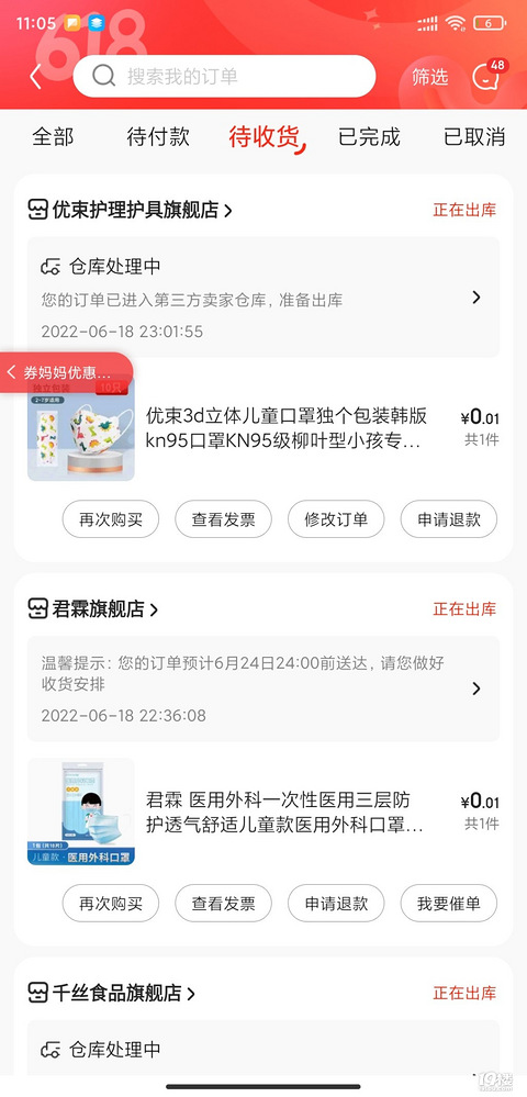 反正口罩一定是必备的,鸡蛋也是生活必需,买就对了肯定不会错。棉签是给我儿子画画时候用的,还有一些零食