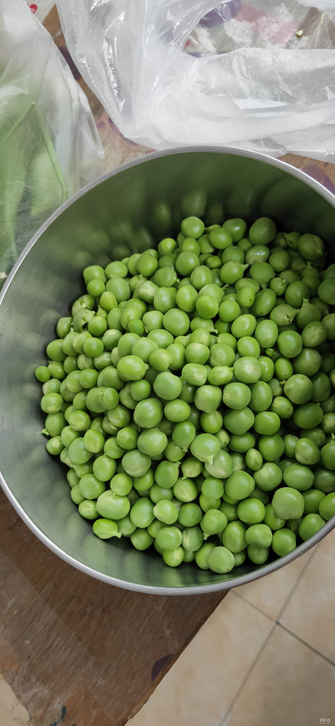 今天买了处理的甜豌豆,原价9.8元一斤,处理一元一包,看着还好,就剩3包全买了,剥好豆称了一下,有8两,哈哈!赚到[/11微笑]