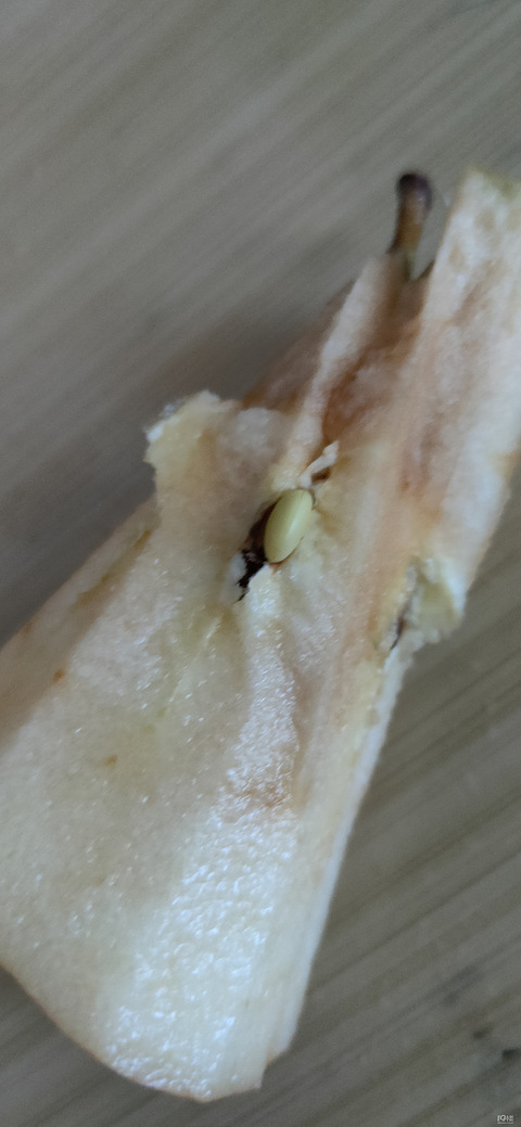 邻居给了几个苹果,一下没来得及吃,主要是自己也有,今天拿来吃,切开就颜色不一样,第一个扔了,第二个颜色稍微好点,感觉也没坏,吃了几口也还行,然后就看到籽发芽了[/11捂脸]最后全部埋进花盆作肥料