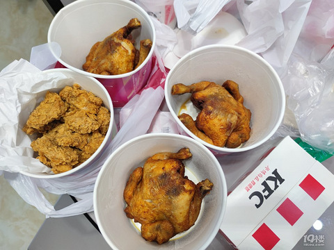 买到了肯德基的蜜汁鸡三个人人手一只块头确实很大看着很诱人没有配辣椒面,有需要可以问店里要撒了自己的调料,鲜嫩多汁还有炸鸡翅可乐加冰..美滋滋还有上校鸡块,吃的好饱哦,一只鸡吃不完哈哈哈哈会不会有点招仇恨[ej=1F604]