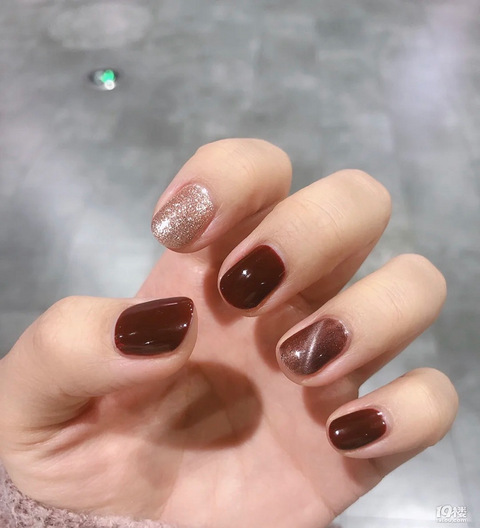 美甲闪闪的 配色很和谐 做的都是暗红 金色 喜欢这种调调 配毛衣好看喜欢喜欢这个也好看