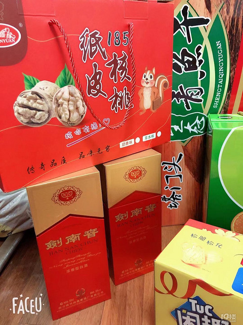 吃的有纸皮核桃,青鱼干,橙子,咸趣,德芙巧克力。喝的是纯牛奶,安慕希,剑南春。过年嘛,就是个喜庆,礼品搬运工!@嘉兴夏安