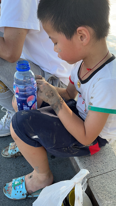 今天带娃喝喜酒,自己在那边吃吃喝喝,弄的满手都是油[ej=1F602]吃完饭带他去九龙山抓螃蟹,大热天的,就呆了半个小时不知道有没有,抓到了2只,也算过过瘾了,然后就带他回去了,衣服身上拖鞋全部是泥,我真的看的要烦死了,只能让他找爸爸去,哈哈。每次放假都得费脑筋去哪里玩[ej=1F602]