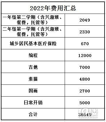 姐姐小学生学费晚托阳光乐园3764元游泳5470元画画8234元英语5400元乐器2200元 弟弟幼儿园学费晚托班140000元接送阿姨10000元画画2020元篮球1900元小主持人690元写字1600元姐弟俩共同支出买药看病2600元APP700元 总体大致就基础教育兴趣班吃药看病=6万[ej=1F602]