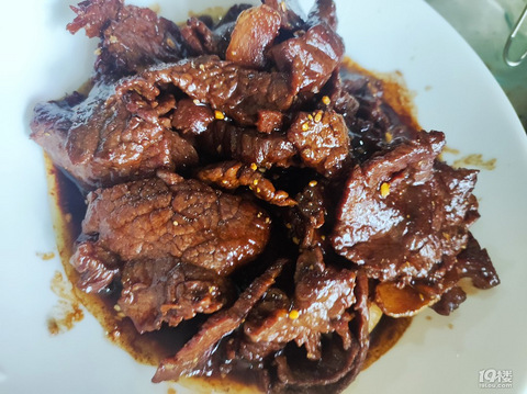 牛腿肉也便宜了,买一小块。到家放冷冻里冻一下,好切片。逆纹路,切成薄片。准备调味料 姜片 蒜头 老抽 生抽 白糖 一点烧烤料锅里油多,放牛肉片煎一会,翻炒,加姜片,蒜头,炒到牛肉变色,带点焦黄。放老抽,生抽,白糖,水。中火煮10分钟。10分钟到,开盖,转大火,收汁,这时候人不能离开,汁收浓就关火,撒烧烤料,拌均匀出锅。