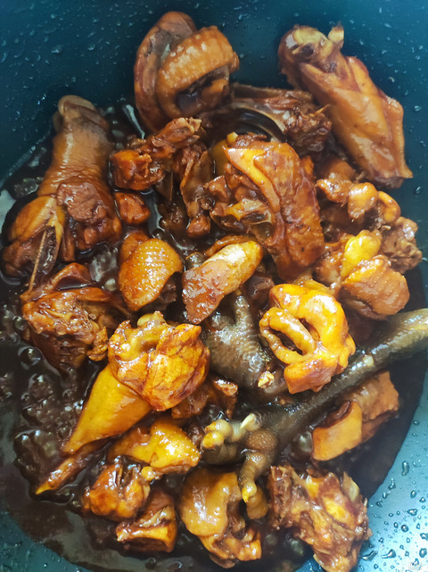 红烧鸡块,偏嫩的鸡煮汤不好吃,红烧很不错。鸡让摊贩剁成小块,回家再洗洗,把背脊上的脏东西扯掉,沥干水分。锅里放油,姜片,直接生炒,炒到鸡肉变色,锅里的油变得清亮,放黄酒,老抽,生抽,白糖,翻炒几下,加热水,煮20-30分钟都可以,看个人喜好。家里有蒜头的,放大蒜头放进去煮也好吃,我喜欢熟蒜的口感。