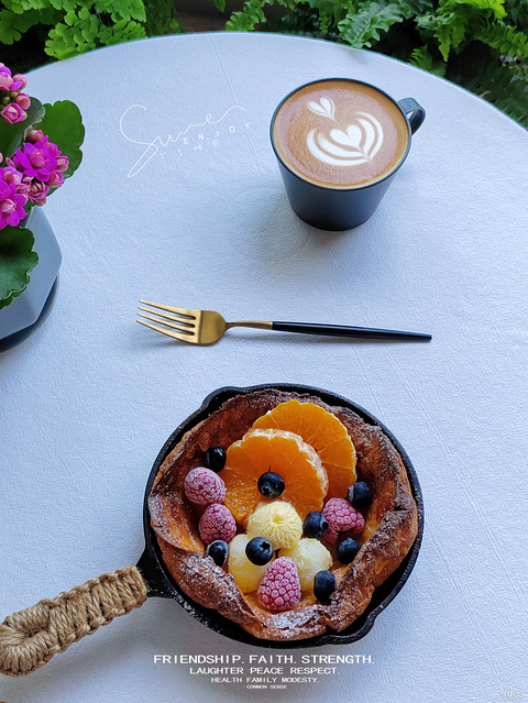 早餐:「荷兰松饼」「咖啡」小铁锅买了很久,终于动手做荷兰松饼了,今天的拉花推推乐喜欢调休的上班日也要开心呀!