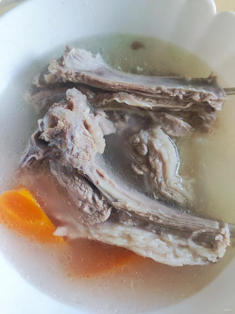 首先把羊肉清水泡半个小时,血水洗干净。然后冷水下锅焯水,水开后会有很多血沫准备一个勺子把这个些沫子撇干净,这个要有耐心而且要大火的时候撇沫子,小了沫子会粘在肉上。到最后沫子变成白色就好了。砂锅,加几片生姜,烧开,把羊肉捞到砂锅里,然后中火45分钟,放萝卜块,再煮15分钟。出锅前放盐。白萝卜,去皮,切滚刀块,放冰糖,加水煮开,捞出过冷水。去萝卜味,这个和老饭骨学的。买的宁夏小羊羔,煮出来真的不膻,汤